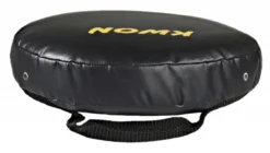 Das runde Handschlagkissen mit mittelweicher Polsterung besitzt ein Obermaterial aus schwarzem PVC. Das Schlagpolster ist mit einer Handgelenk- und einer verstärkten Halteschlaufe versehen.Die Ventilationslöcher an der Seite und Rückseite des Schlagpolsters sorgen für den Druckausgleich beim Schlagen.