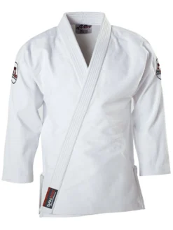 Die 350 g schwere Jacke ist trotz ihres geringen Gewichts sehr reißfest. Dank dem aus dem im BJJ bekannten Pearl-Weave-Verfahren ist die Jacke sehr eng gewebt und erschwert so das Greifen durch den Gegner. Die Ju-Jutsu Jacke ist an der Brust, in den Achseln sowie am Nacken zusätzlich verstärkt.