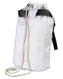 Die DANRHO Tragetasche aus 14 oz schwerem, extrem reißfestem Canvas-Baumwollmaterial und schwarzem Ziergurt wird mittels Kordelband verschlossen. Durch Verbinden der Kordel mit dem Metallring am Taschenboden entsteht ein praktischer Rucksack. Motiv-Aufdruck Karate.