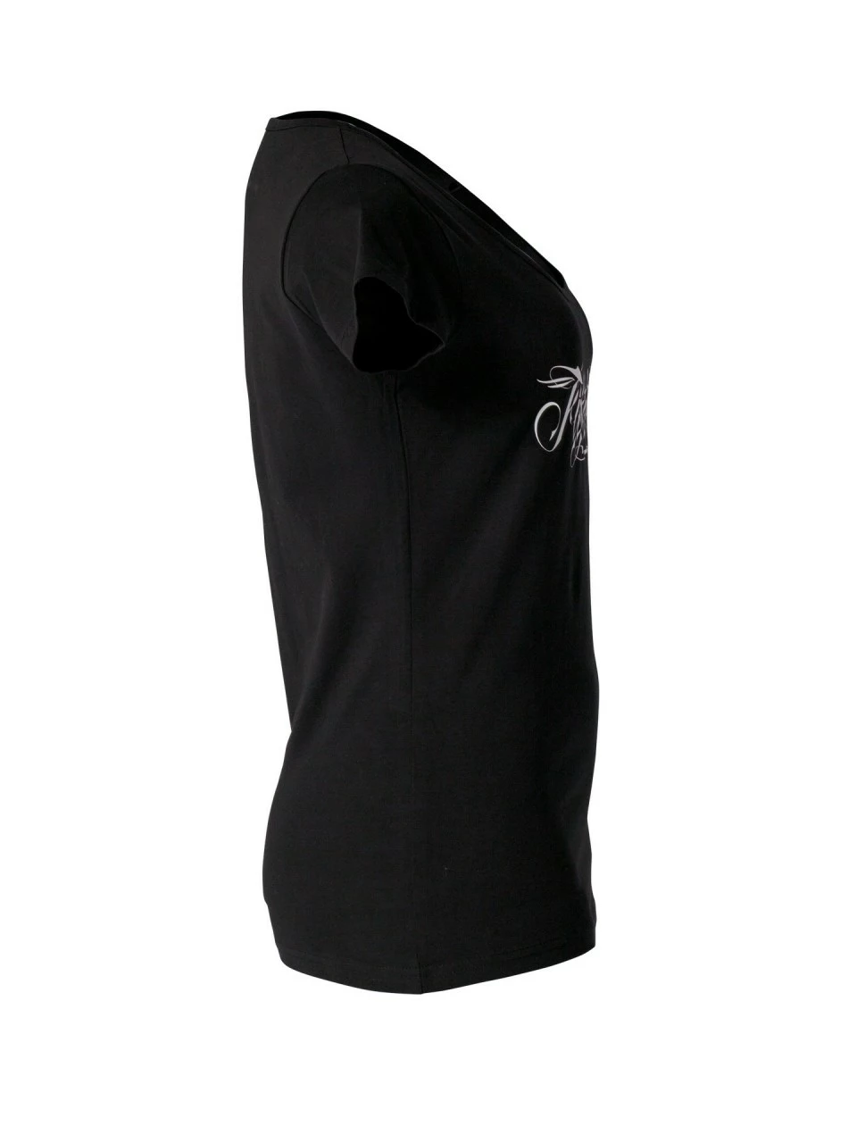 Femininer Look durch köperbetonten Schnitt. Exzellente Passform des Baumwollshirt durch den geringen Elastananteil im Gewebe. Das kurzärmelige T-Shirt mit Rundhalsausschnitt begeistert durch den FIGHTNATURE Schriftzug auf der Brust.