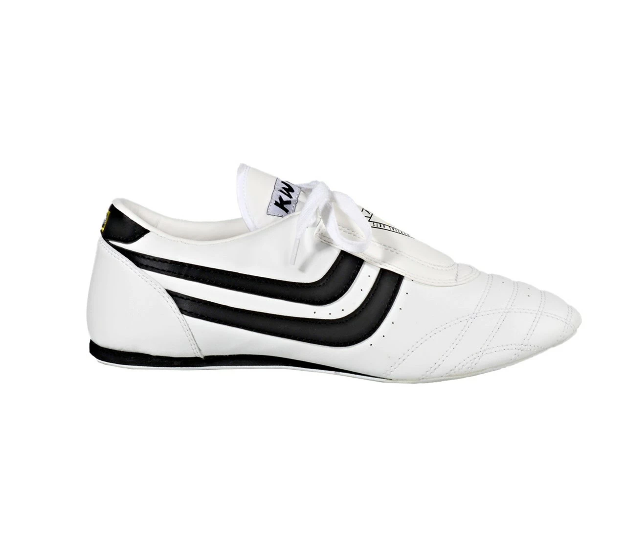 - Der klassische KWON Indoor-Trainingsschuh für Einsteiger besitzt eine dünne, elastische Gummisohle sowie eine hochgezogene Ferse und Ventilationslöcher.