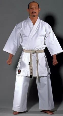 Der schwere Karateanzug ist besonders für Kata geeignet. Der hervorragend verarbeitete Karateanzug ist aus sehr weichem Baumwollmaterial hergestellt. Der Karateanzug hat den speziellen japanischen Kata-Schnitt mit kurzen Ärmeln und Hosenbeinen. Die Kata-Jacke ist extra lang und die Karatehose hat einen verstärkten Schnürbund.