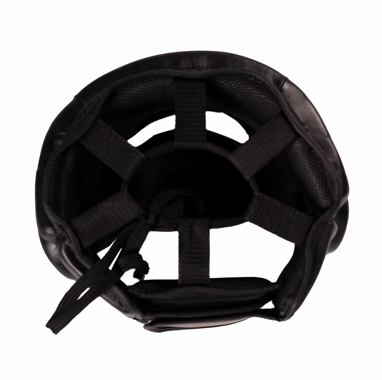 Der hochwertige Leder Kopfschutz mit Bügelfront schützt Nase und Gesicht bei intensiven Boxtraining.