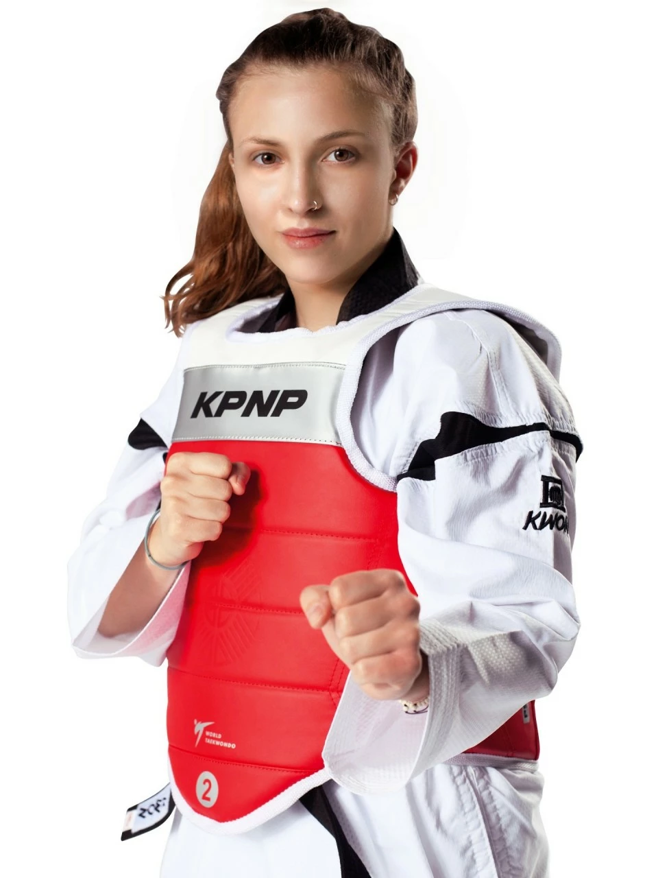 Die elektronische Taekwondo Weste von KPNP hat einen eingebauten Transmitter und ist mit fortschrittlicher Sensortechnik ausgestattet. Sie verfügt über eine erstklassige Treffer-Erkennung und Sensorenempfindlichkeit mit bestmöglichster Performance. WT rec.