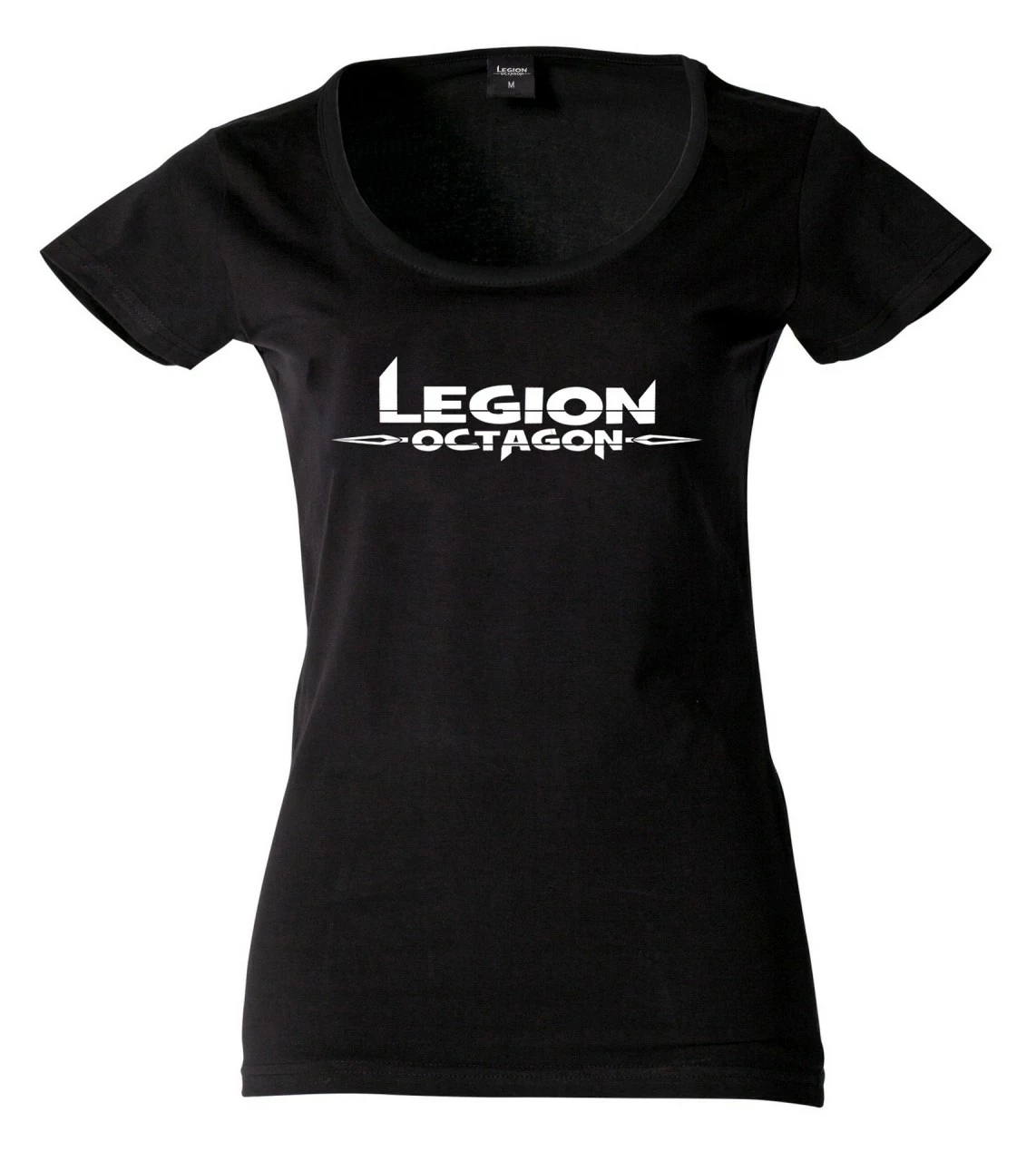 Femininer Look durch köperbetonten Schnitt. Exzellente Passform des Baumwollshirt durch den geringen Elastananteil im Gewebe. Das kurzärmelige T-Shirt mit Rundhalsausschnitt begeistert durch den LEGION OCTAGON Schriftzug auf der Brust.