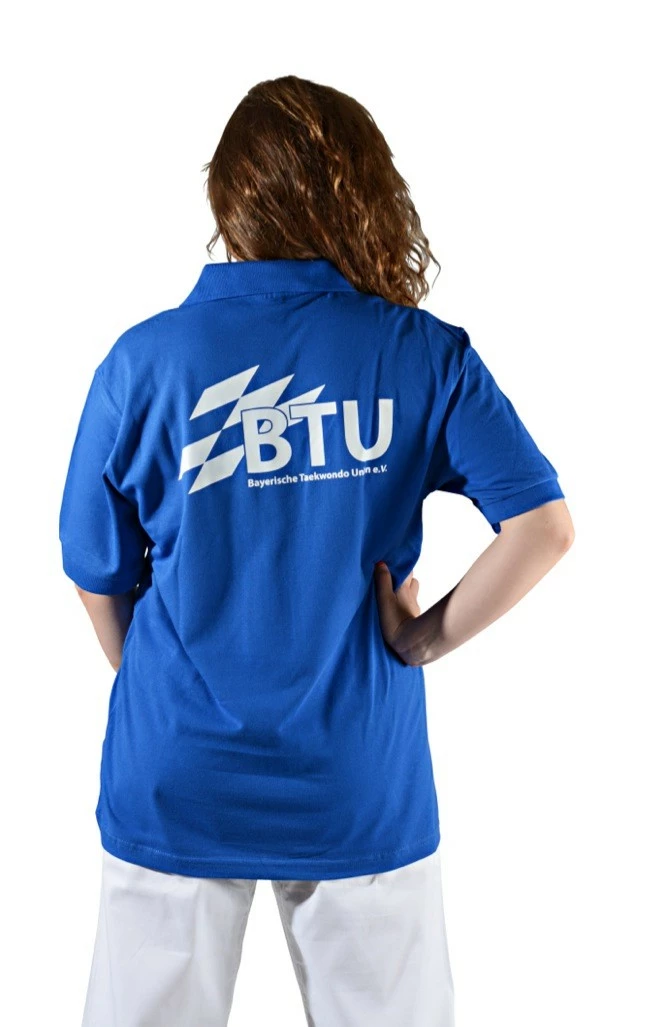 Polo Shirt, blau mit Druck BTU