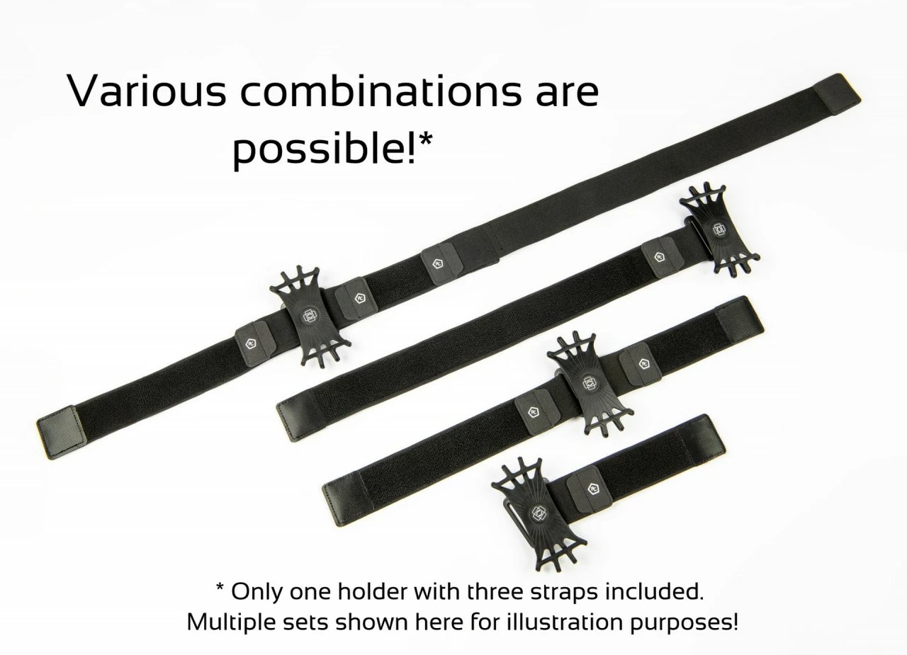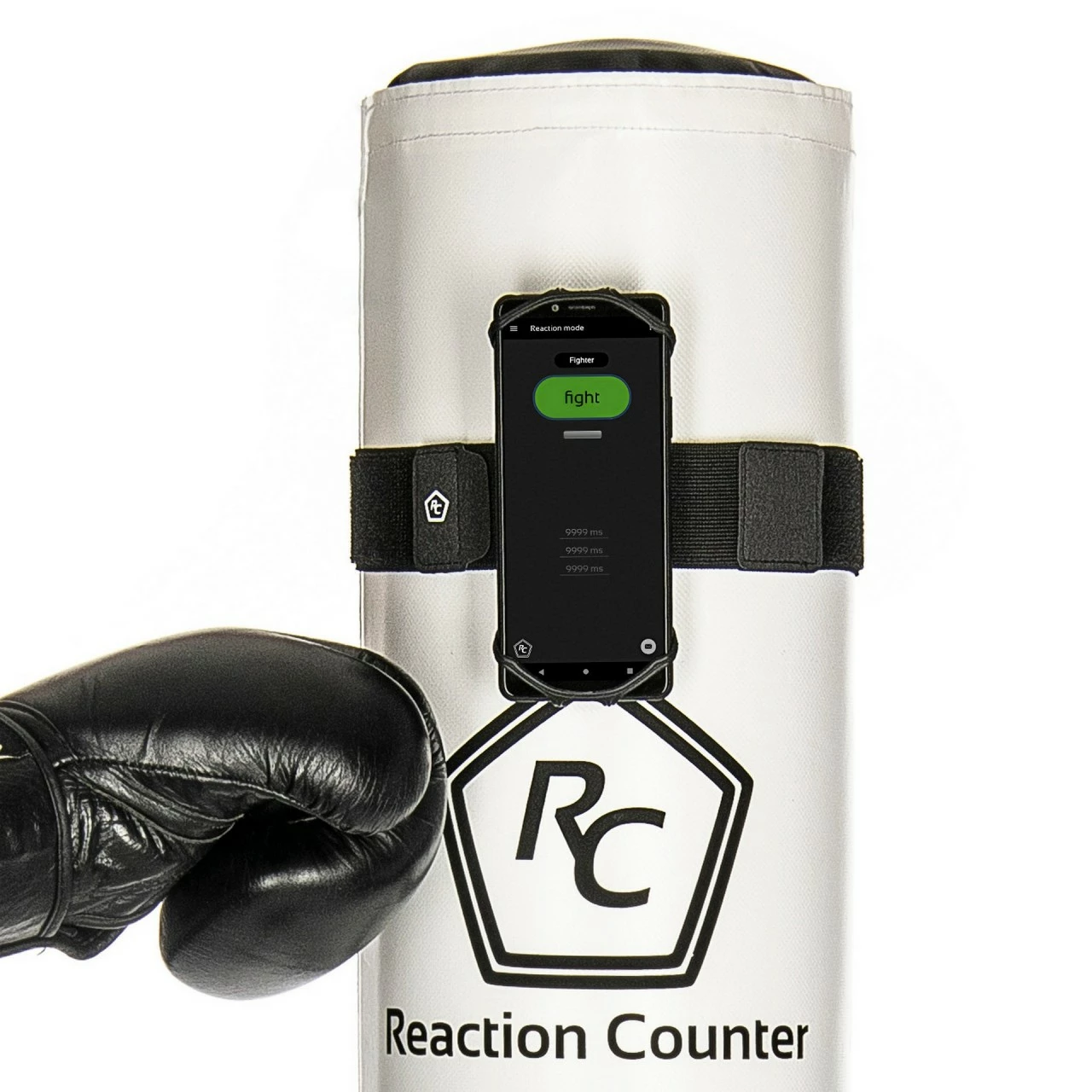 Smartphone Halterung „Reaction Counter“ flexibel zu befestigen. Drei elastische Bänder verschiedener Länge garantieren sicheren Halt an jeder Art von Kampfsport-Equipment. Schnell abnehmbar.