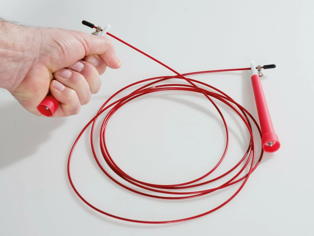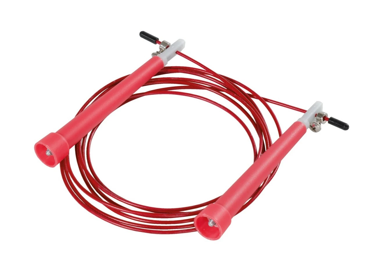 Profi-Springseil aus 90° Grad senkrechtem Drehgelenk und Kabelseil aus Draht garantiert ein schnelles Rotieren und verhindert verknoten, verheddern oder verdrehen. Die robusten Kugellager aus Metall sind so konzipiert, dass sie die Geschwindigkeit des Seils steigern. An den Griffen ist die Länge des Seils individuell verstellbar. Die abnehmbare Endkappe aus Gummi ermöglicht, das das überschüssige Seil mit Hilfe einer Zange entfernt werden kann. Das ideale Gerät zum Aufwärmen und zum Training der Ausdauer bzw. Geschwindigkeit im Fitnessstudio bzw. zu Hause.