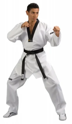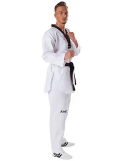 Der Taekwondo Anzug Starfighter mit schwarzem Revers ist von der World Taekwondo (WT) offiziell anerkannt.