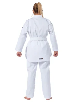 Der TKD Anzug mit rippenartiger Stoffstruktur ist aus leichtem, weichem Mischgewebe (55 % Baumwolle/45% Polyester).