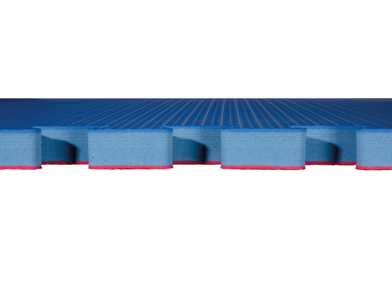 - Die zweifarbigen Wendematten (rot/blau) machen das Verlegen flexibler und sparen eine Menge Platz.