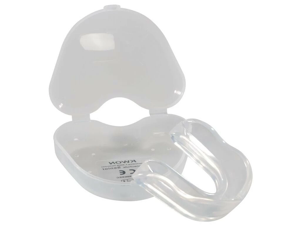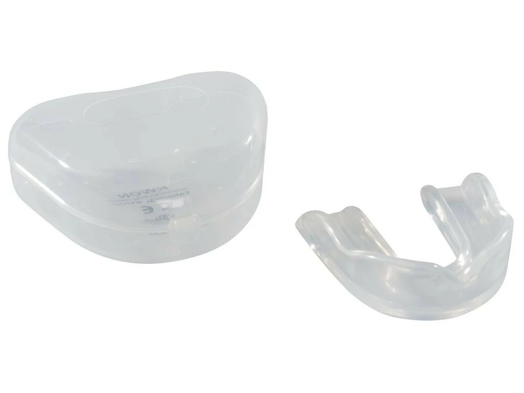Transparenter Zahnschutz für Erwachsene. Individuelle Anpassung durch Wärme. Lieferung und Aufbewahrung in einer transparenten KWON Plastikbox.
